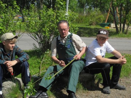 Kesän alussa sai nykyinen seiskaluokka mieluisia vieraita. Eräällä pyöräretkellä Tervaniemeen olimme tutustuneet kauhajokiseen Unto Lyly-Yrjänäiseen. Nyt hän oli liikkeellä vaimonsa Irjan kanssa. Auton kyydistä haettiin suuri kuorma pajun varsia. Sitten istuttiin pihakiville ja saatiin kädestä pitäen oppia, miten pajupilli valmistetaan.