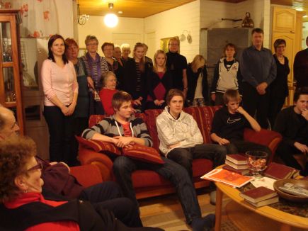 Kinkerien lopulla keskusteltiin seurakunnan yhteisistä asioista. Kirkollisia ilmoituksia kaivattiin Viispiikkisessä - joskin säästön tarvekin ymmärretään. Epävirallisen tiedon mukaan Peuralinnassa asuisi tällä hetkellä 33 henkilöä. Väki vähenee pikkuhiljaa, mutta paluumuuttajiakin on. Muisteltiin suurta muuttoaaltoa Ruotsiin. Talvella 1956 lähti yhtäaikaa Ruotsiin linja-autolla monta perhettä. Ensi vuoden kinkerit päätettiin pitää Huumarkankaassa ja kirkkopyhä syksyllä. Illan loputtua Anita ja Katja tarjosivat meille maukkaita pöydän antimia, joiden yhteydessä käytiin tärkeät muut jutut - joista tässä yhteydessä ei tietenkään kerrota. Kiitoksia talonväelle ja mukana olleille!