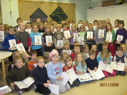 Nopolan koulun esikoulu ja 1.-2.luokan oppilaat saivat lahjoituksena Kouluinfo-työkirjan.