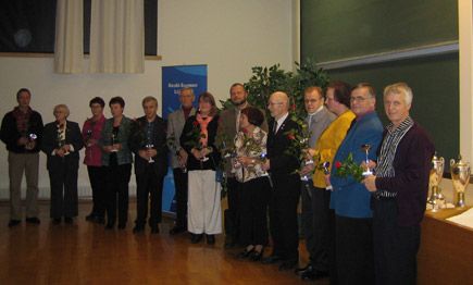![]() Alpo pokkasi palkinnon vuoden 2006 kyyjärveläisten liikuttajana ja liikkujanaAlpo Viitala Keski-Suomen maaakunnallisessa urheilijoiden palkitsemistilaisuudessa. Jyväskylässä järjestettyyn juhlaan oli kutsuttu jokaisesta Keski-Suomen kunnasta aktiiviliikkuja ja liikuttaja. Kyyjärveltä valinta osui kohdalleen. Alpo tunnetaan pitkäaikaisena seuramiehenä. Lähtöjä on kertynyt niin hiihdon, soudun kuin tikkaurheilun parissa. Iso on se määrä ihmisiä, jotka liikkuvat näidenkin lajien parissa. Mikäs on harrastaessa, kun joku kantaa vastuun järjestelyistä. Miettikääpä mitä kaikkea tapahtuu ennen ja jälkeen varsinaisten kisojen. Onnittelut Alpolle! Keski-Suomen parhaaksi urheilijaksi muuten valittiin suunnistaja MM-mies Jani Lakanen. |
