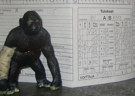 Kamppailu oli molemmille joukkueille sangen tärkeä ja jännitys oli sen mukaista. Voittajalle oli tarjolla kauden avauspisteet. HU-Kalajoki tuli nöyrällä mielellä ja tekivät juuri sen mitä pystyivät, kiusasivat minkä kerkesivät ja betonimiesten jalat hyytyivät. Välillä näytti kuin oikeasti olisi ollut kintut valettu betoniin. Onneksi meillä on mahtavin kotiyleisö, joka jaksoi kannustaa ja oman lisäpotkun antoi tietenkin "Hapettaja". Varmasti suuri merkitys, kun kauan odotettu ikoni palasi joukkueeseen ja sai miehet rennoksi. Pelissä ei hienouksia tarjoiltu mutta jännitystä riitti viimeiseen pisteeseen saakka. Apina on nyt pudotettu niskasta. Katsokaa pöytäkirjan lukemia niin näette kuinka tasainen peli loppujen lopuksi oli. Jossakin on laskettu pelin erän ja pelin kestävän saman verran minuutteja kuin hävinnyt saa erässä tai ottelussa pisteitä. 110-110 menivät pikkupisteet ja ottelun kesto 109 minuuttia. Niin tärkein meinas taas unohtua, voitto tuli kotiin meille kaikille, jotka hommassa ollaan mukana, enempi tai vähempi! Erin 3-2.