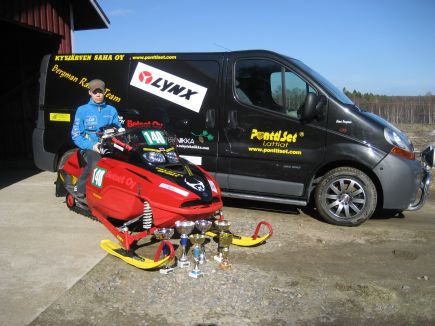 ![]() Vauhdin hurmaaKyyjärveläinen Henri Bergman harrastaa kesäisin motocrossia ja talvella intohimona on moottorikelkkailu. Moottorikelkkailu on ollut osa Henrin elämää jo 6 vuotta. Harrastus alkoi perheen työkelkalla, mutta kun työkelkka sai hieman siipeensä tässä vauhdikkaassa harrastuksessa, piti hankkia sport kelkkailun vaatimuksiin sopiva kelkka. Taitojen karttuessa, Henri aloitti kilpailemisen SM-sarjoissa, sprintissä ja endurossa. Ensimmäiset kisat kaahailtiinkin junnuluokassa jo vuonna 2003. Junnuluokka toi satunnaisia hyviä tuloksia, mutta vauhti alkoi kulkemaan vasta P-600 luokkaan siirryttäessä vuonna 2004.P-600 luokan sprinttien saavutusten perusteella siirtyminen enduron A-sarjaan tapahtuikin vuonna 2005. Kyseisen luokan merkittävimpänä saavutuksena voidaan pitää SM-enduroluokan voittoa vuodelta 2005. Kelkkailuharrastus aloitettiin siis Lynx 5900 työkelkan voimin, mutta sen jälkeen adrealiinia nostatti Ski-Doo 380 Formula-S. Kisakokemuksen lisääntyessä hankittiin vuosille 2004-2005 oikein kunnon kiitäjä Lynx 550 Racing. Vaikka tulokset kahdelta kaudelta olivat kiitettäviä kelkkamerkkiä vaihdettiin kauden 2006 koittaessa. Merkiksi tuli jälleen Ski-Doo ja mallina MXZ 500. Merkin vaihto ei kuitenkaan tuottanut haluttua tulosta, vaan kausi menikin täysin penkin alle. Niinpä palattiin takaisin tuttuun ja luotettavaan Lynxiin. Ja tällä Lynxin kelkalla kausi 2007 sujuikin ilman suurempia ongelmia ja sen seurauksena sijoitukset tänä vuonna olivat hyviä. Ensi talven kisoja silmällä pitäen kuluu kesä harjoitellessa motocrossilla ja kuntotreenillä. Joulukuussa alkavalle kaudelle 2008 spurtataan jälleen Lynxin siivittämänä.