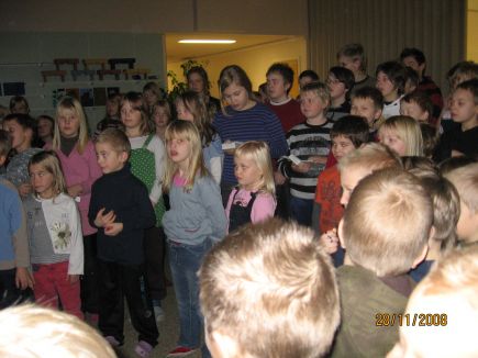1.12.2008 Pirkko Kotanen/perusopetusNopolan koululla aloitettiin joulun odotus perinteisellä adventtiaamunavauksella.