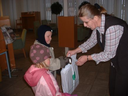 8.12.08 Esikoulu/Eeva PölkkiEskarit kävivät hakemassa joulukalenterit Paikallisosuuspankilta marraskuun lopulla.
