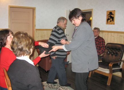 ![]() Saunakylän tupaillassaPerjantaina 6.2. kokoonnuttiin Irma ja Vilho Hänniselle tupailtaan. Jo tienhaarassa sekä pihamaalla tunnelmalliset jäälyhtykyntteliköt toivottivat vieraat tervetulleiksi. Kylän väkeä kokoontui Irman makoisten kahvien ja leivonnaisten äärelle tarinoimaan kuulumisia. Tammisen Sulo kertoi hauskan jutun Lepikko Hempasta. Lepikko Hemppa oli ennen Ameriikassa. Amerikkalaisilla oli sellainen puimuri, josta rieskoja tippui, hapanta leipää ei tullut kun ei kerinnyt hapata. Hemppa kävi myös maapallon laidalla, moitti, että niin huolimattomasti aidataan; ei ollut aidattu ollenkaan. Olisi voinut pudota, jalkojaan vaan heilutteli maapallon laidalla. Tupaillan päätteeksi suoritettiin perinteinen arvonta. Täytekakun voitti Irma Mäkelä, suklaalevyt menivät Elvi Näreaholle ja Pekka Mäkelälle, karkkipussit Ritva Mäkelälle ja Sami Toppiselle. Onnea voittajille. Mukava ilta taas kerran ja kevättä kohden matkataan. Kiitokset Irmalle ja Vilholle. |