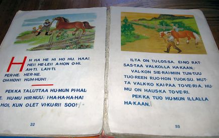 Sulo Tamminen on tallentanut sananlaskuja. Kuva on Mäkelän Hannun aapiskirjasta, painettu v.1953.
