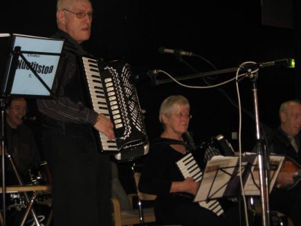 Hyvän mielen lisäksi vieraat toivat pelit ja vehkeet: soitto soi ja laulu raikasi. Kokkolan yhdistyksellä on monenlaista toimintaa, kerhojakin parikymmentä. Senioritanssijat pyörähtelivät sujuvasti. Musiikkiharrastajat esittivät eri kokoonpanoissa laulua ja soittoa. Pienoisnäytelmä käsitteli elämän draamaa. Yhdistyksen puheenjohtaja Esko Hanhisalo toimi juontajana ja nauratti yleisöä vitseillä. Lopuksi tanssittiin oikean orkesterin tahdissa.