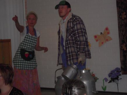 ![]() Kannonkoskella nähty lentävä lehmä!Kannonkoskella kaikki on mahdollista! Se huomattiin rovastikunnan yhteisessä kehitysvammaisten kirkkopäivässä tiistaina 12.5. Kannonkoskelle kokoontui yhteensä noin 150 iloista ihmistä, kehitysvammaisia ja heidän läheisiään, viettämään jokavuotista kehitysvammaisten kirkkopäivää. Osallistujia oli Kyyjärveltä, Karstulasta, Saarijärveltä, Kivijärveltä, Kannonkoskelta ja Pylkönmäeltä. Päivä alkoi messulla Kannonkosken kirkossa, jossa saarnasi kehitysvammatyön pappi Maarit Nuopponen ja liturgina toimi Timo Kemppainen. Messun jälkeen lähdettiin seurakunta talolle syömään. Ruokana oli hyvää makaronilaatikkoa ja kiisseliä. Ruuan jälkeen alkoi ohjelma. Saatiin kuulla monta hyvää laulua ja runoa. Saarijärviset pistivät koko joukon jumppaamaan ja metsästämään leijonaa. Kesken juhlan saapui paikalle joku kannonkoskinen Piippolan vaari, joka oli kadottanut lehmänsä (vaari kuvassa oikealla!) , keinosiementäjäkin pyörähti oven suussa. Aikamme lehmää etsittyämme se sitten löytyikin, onneksi! Sillä oli siivet ja se lensi! Jos ette usko, kysykää keneltä tahansa mukana olleelta. Asialla oli noin 150 silminnäkijää! Että oli ne aikamoiset juhlat! Ensi vuonna tavataan Karstulassa! |