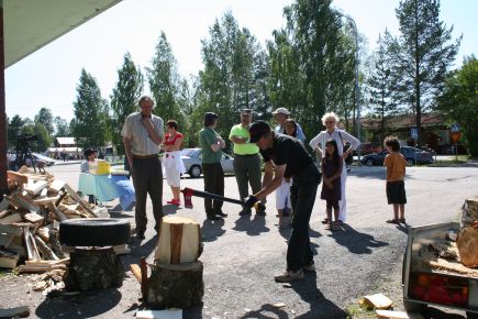 ![]() Klapukasan onnellinen omistaja....on muuramelaistunut Anneli Pillikko. Kyyjärven mediamyllärit järjesti tällä kertaa markkinoilla vipukirveen esittelyn ja testaustilaisuuden. Lisätietoja tuosta suomalaisesta keksinnöstä löytyy Nopola Newsin yhteistyökumpanisivulta. Moni markkinavieras kävikin kokeilemassa ja ihmettelmässä vipuvoiman vaikutusta pölkyn päässä. Päivän mittaan klapuja kertyi parin motin verran ja kasa arvottiin arvan lunastaneiden kesken markkinoiden päätteeksi. Onnettarena toimi kunnanrakennusmestari Pekka Mäkelä ja virallisena valvojana Malla Koivisto. Onni suosi tällä kertaa muuramelaista Anneli Pillikkoa, mutta kasa tuskin matkaa Muurameen saakka vaan päätynee Vaasantien varteen. Lohdutuspalkinnot, Eläköön Kuusniemi kirja ja lippalakki, menivät Hannu "Irman mies" Mäkelälle Paskolammentien varteen ja kolmas palkinto Anja Sorsamäelle Kivijärvelle. Myllärit kiittää kaikkia toimintaan tutustuneita ja tukeneita. Pilkottavat pölkyt lahjoitti muuten Alpo Viitala Nurmijoelta, joten erityiskiitos kuuluu Kiventien varteen. Lisäkuvia luvassa kunhan pakinoitsija S.Käki markkinakuvansa kamerastaan purkaa.