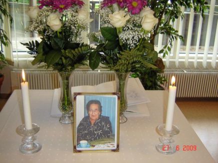 ![]() Tyyne Viik siunattiinTyyne Viik Nurmijoelta saateltiin viimeiselle matkalle lauantaina 27.6. 2009. Siunauksen toimitti vs. kirkkoherra Jari Kuusi. Kanttorina toimi Minna Erkkilä. Virkkakankaan hautausmaalle ja kappeliin oli kokoontunut omaisten, sukulaisten ja ystävien joukko saattelemaan äitiä, mummoa ja isomummoa tämän viimeiselle matkalle. Tyyne Vilhelmiina Viik oli kuollessaan 87-vuotias. Hän oli syntynyt Kumpulan Jokelassa. Tyyne avioitui 1941 Onni Viikin kanssa. Puolisot raivasivat ja perustivat rintamamiestilan Nurmijoelle 1953, keskelle synkkää metsää. Tyyne ja Onni Viikillä on kaiken kaikkiaan neljä tytärtä, joista kaksi on jo nukkunut pois. Lisäksi jälkikasvua on karttunut tyttärien lasten kautta. Muistotilaisuutta vietettiin Kivirannassa puheen, virsien, musiikkiesitysten ja adressien luvun merkeissä. Ikävää ja kaipausta sävytti kuitenkin toivo jälleen näkemisestä, joka on luvattu jokaiselle Kristukseen uskovalle. Itse Jeesus vakuuttaa meille: ..."jokaisella, joka näkee Pojan ja uskoo häneen, on ikuinen elämä. Viimeisenä päivänä minä herätän hänet." Pyydämme Taivaan Isältä voimia ja lohdutusta Tyyne Viikin läheisille surun ja kaipauksen keskellä. |