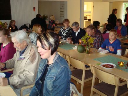 ![]() Kannattaa olla hyvä toiselle"Nykyihminen ajattelee, mikä kannattaa? Avioliitossa kannattaa olla hyviä toisilleen." Näin sanoi perheneuvottelukeskuksen johtaja, rovasti Juha Muilu. Hän saarnasi perheen sunnuntain jumalanpalveluksessa ja piti alustuksen aiheesta: "Perheen arjessa jaksaminen." Pappi kysyy vihkiparilta: "Tahdotko osoittaa rakkautta ja uskollisuutta sekä hyvinä ja pahoina päivinä." - Avioliitto on tahtomista. Tahdonko olla hyvä puolisolleni, rakastaa ja kunnioittaa häntä! Tahdonko olla ihminen ihmiselle! Raamattu kehoittaa meitä kilvan kunnioittamaan toinen toistamme. Jos vanhemmat rakastavat ja jaksavat niin myös lapset saavat hyvää. Vanhempien välinen suhde on lasten koti. Liian paljon kuluu energiaamme siihen, että suhteemme ei ole kunnossa. Siksi tulisi olla avoimia ja rehellisiä. Asiat hoituvat vain puhumalla ja kuuntelemalla. Kun tulen kuulluksi, ymmärretyksi, on kuin saisi "kopin" palloilutermiä käyttäen - olen tullut hyväksytyksi! Hyväksytyksi tuleminen on yksi keskeisimpiä kokemuksia avioliitossa ja perheen elämässä... mm. näitä asioita tuli esille päivän esitelmässä. Alustuksen jälkeen oli keskustelu. Jp:n jälkeen saimme nauttia ruokaa ja kahvia. Päivän järjestelyistä vastasi seurakunnan lapsi-ja nuorisotyön johtokunta ja kokkina hääri Taina T Noponen. |