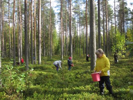 Sää oli aurinkoinen ja puolukat hyppelivät vinhaan tahtiin joko poimureiden tai sormien avulla astioihin. Joillakin toppuluokkalaisilla oli tosi suuriakin apuvälineitä mukana. Aamulla koulun pihalla kaikui heleästi kommentti- Ope, mulla on tää PUIMURI mukana !