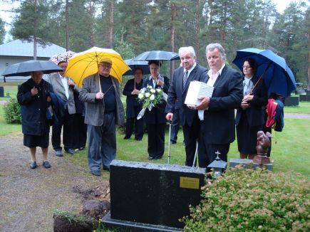 ![]() Kauno Mäkinen saateltiin Kyyjärven kirkkomaahanKauno Mäkisen tuhkauurna laskettiin Kyyjärven hautausmaahan lauantaina 29.8.2009. Kauno Mäkinen syntyi Vääräjärven talossa Peuralinnassa 12.8.1928 Siiri ja Julius Mäkisen poikana. Hän kasvoi suuren sisarussarjan keskellä ja kävi kansakoulun Peuralinnassa. Nuoruusvuodet hän oli isän apuna maatalous- ja metsätöissä. 1950-luvulla kolme sisarusta: Veikko Enni ja Olavi muuttivat Kanadaan ja Kauno Ruotsiin. Ruotsissa hän oli metsätöissä monen muun suomalaisen ja peuralinnalaisen tavoin. Ruotsista hän aikanaan palasi Suomeen. Hän asui Helsingissä ja oli eläkeikään asti rakennustöissä. Kauno oli tottunut jo nuoresta saakka tekemään raskasta ruumiillista työtä. Eläkkeelle jätyään hän jäi asumaan Helsinkiin ja viimeiset vuodet eli palvelukodissa. Hänen harrastuksenaan oli lukeminen ja erityisesti eläkepäivinään hän oli kiinnostunut sota-ajan tapahtumista. Vanhemmat veljet Arvo ja Reino olivat mukana jatkosodassa. Reino veli haavoittui vaikeasti Lapin sodassa ja kuolikin myöhemmin Kyyjärvellä. Kauno voimat ehtyivät sairauden myötä ja hän nukkui pois 2.8.2009 Helsingissä, jossa oli myös ruumiinsiunaus 13.8. Tuhkauurna laskemishartauden toimitti khra Olavi Vallivaara läheisten läsnäollessa. Muistohetkeä vietettiin syntymäkodissä, Vellamo ja Mauri Mäkisellä, Väärässämäessä. Kaunoa jäivät kaipaamaan kaksi veljeä ja sisar Kanadassa, veli Helsingissä, veli-ja sisarpuolet sekä äitipuoli ja muut läheiset. |