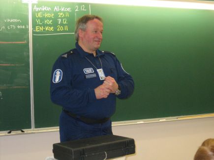 ![]() Poliisin vierailu koululla 19.11.2009Jarmo Hakkarainen vieraili koululla kertomassa turvallisesta liikkumisesta liikenteessä.
