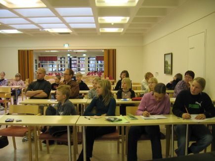 ![]() VERSO-koulutusta Kyyjärvellä27.10.2009 kokoontui 30 oppilasta ja 7 aikuista Kivijärveltä, Kannonkoskelta ja Kyyjärveltä VERSO-koulutukseen Kyyjärvelle Kivirannan palvelukeskukseen. Mitä kummaa se VERSO eli Vertaissovittelu oikein on? Vertaissovittelu on yksi koulusovittelun menetelmä. Vertaissovittelu eli VERSO on menetelmänä yksinkertainen selkeä kaava, jonka mukaisesti osapuolia hieman vanhemmat sovittelijoiksi koulutetut oppilaat auttavat osapuolina olevia oppilaita löytämään itse ratkaisun ristiriitaansa. Koulutuksen aluksi Eeva Saarinen kyseli oppilailta ja aikuisilta, että millaisia asioita kouluissa yleensä selvitellään? Mitä yhteentörmäyksiä oppilailla on keskenään? Miten näihin asioihin tartutaan koulun arjessa? Esille nousi hyvin monelta osallistujalta se, että oppilaita nimitellään, kiusataan sanoilla, katseilla, ilmeillä ja syrjimällä. Myös toisen omaisuuteen kajoamalla ja rikkomalla tehdään kiusaa. Kaikki leikkimielinen kiusanteko ei ole aina tarkoitettu toisen mieltä pahoittavaksi, mutta kuitenkaan koskaan ei voi tietää miltä siitä toisesta osapuolesta oikein tuntuu. Näiden mielenpahoituksen seurauksena tulevat usein niitä riitatilanteita joita sitten oppilaat keskenään sovittelevat, joskus hyvinkin omaperäisesti. Sen seurauksena sitten on mielipahaa kummallakin osapuolella. Näiden mielipahojen välttämiseksi on kouluissa koulutettuna nyt VERSO-oppilaita ja ohjaajia, joiden tehtävänä on olla sovinnontekijöitä riitapukareiden välillä. Versossa ei koskaan langeteta rangaistuksia oppilaiden toimesta, vaan tarkoituksena on saada aikaan sopimus, jossa kumpikin osapuoli on tasavertainen ja syytön. Ketään ei syyllistetä, eikä syylisiä tilanteeseen haeta. Sovittelussa tehdään yhteinen sopimus siitä, ettei toista osapuolta kohdella enää huonosti ja jatketaan kanssakäymistä sovussa tästä eteenpäin. Oppilaat itse kokevat tämän koulutuksen tärkeäksi ja haastavaksi. Heidän mielestään sovittelu on haastavaa, kivaa, rentouttavaa ja hyödyllistä. Katsottiin myös, että siitä on hyötyä riidan osapuolille ja koko maailmalle sekä sovittelijoille itselleen. Näin ehkä saamme aikaiseksi sopuisamman maailman pitemmän päälle. Osa oppilaista oli jo konkarikoulutettuja ja osasta tuli uusia sovittelijoita. Vertaissovittelukoulutusta järjestää Suomen sovittelufoorumi ry, lisätietoja www.ssf-ffm.com