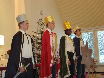 ![]() Joulu on lähelläTiernapojat lauloivat jumalanpalveluksen päätteeksi nuorten joulukirkossa sunnuntaina 20.12.2009. Tiernapoikina olivat Perhon lukion pojat: Lauri Noponen, Eetu Erkkilä, Kalle Muli ja Samuli Tamminen. Tämä jumalanpalvelus oli myös vuoden 2010 rippikoulun aloitustilaisuus. Yhteensä 18 rippikoululaista oli aloittamassa kevään seurakuntaan tutustumisjaksoa. Oman seurakunnan leiri on kesällä juhannusviikolla Lapissa. Konfirmaatio on sunnuntaina 11.7.2010. Tosin leiristä taitaa tulla seurakunnan historian osallistujamäärältään pienin. Tervetuloa joulun tilaisuuksiin: jouluaattona hartaus kappelissa klo 14 (joululaulut), jouluaamun juhlajumalanpalvelus kirkossa klo 7, tapaninpäivän joululaulumessu klo 19 (Oikarin tytöt) ja 3.joulupäivän jumalanpalvelus klo 10 (Raimo Kytölä ja Juliana Muli). |
