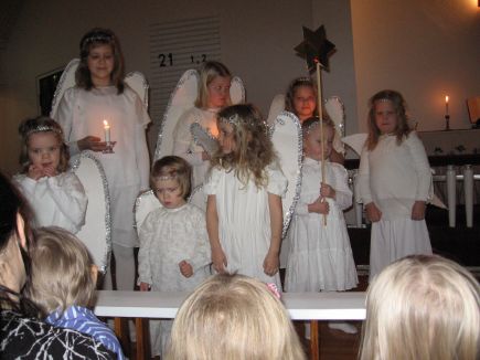 ![]() Enkeli taivaanSeurakunta ja päivähoito viettivät yhteisiä joulujuhlia 8.12. Kirkko oli täynnä lapsiperheitä. Ilmassa oli jännitystä ja juhlan tuntua. Juhlan aluksi varhaisnuoret johdattivat kirkkokansan Beetlehemin tapahtumiin; Jeesus -lapsen syntymään, paimenten rooliin kedolla ja enkelikuoron kauniiseen lauluun. Sen jälkeen eteen astelivat kerholaiset, jotka lauloivat Raisa -kerhotädin johdolla joulupuu on rakennettu. Esityksen jälkeen Raisa kutsui myös Muksulan väen estradille ja yhdessä kerholaisten kanssa lauloimme nyt sytytämme kynttilän. Muksulan ohjelmistossa oli laulu paimenten joulupäivästä ja jouluruno. Juhlan lopuksi tonttu vieraili tapahtumassa jakaen kaikille lapsille karkkipussit. Kaiken tietysti kruunasi kahvi- ja mehutarjoilu. Kiitoksia kaikille juhlan järjestäjille ja vanhemmille lapsineen mukanaolosta ja mukavasta yhteisestä juhlasta. Rauhallista joulun aikaa! |