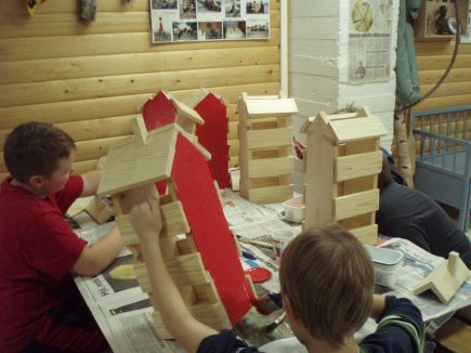 Niinpä kyypartion Oravat vartio urakoi talonsa rakennuksessa runsaat kolme koloiltaa. Siinä sitä kysyttiin kärsivällisyyttä kun työ eteni vaiheittain. Lautatavaran sahaus ja naulaus, kivaa puuhaa mutta ei välttämättä ihan helppoa. Mikä kumma siinäkin hommassa on? Kun ihan suoraan naulaa alaspäin, niin eikös se naula välillä mene ihan vinoon! Ja joskus kurkistaa jopa sieltä sivusta, se naulan terävä pää! |