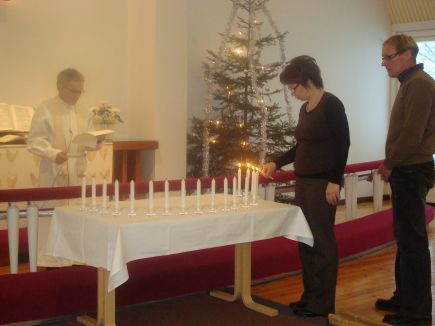 ![]() Kastettujen kirkkopyhäLoppiaisena juhlittiin uusia seurakunnan jäseniä kirkossa ja sytytettiin kynttilät. Olemme viettäneet vanhan ajan joulua. Lunta on paljon ja pakkastakin parhaimmillaan -30 astetta. Loppiaispäivän aamunakin -25. Siitä huolimatta juhlaan oli moni päässyt. Kynttilät syttyivät seuraaville vuonna 2009 kastetuille uusille seurakuntamme jäsenille: Jakob Juho Jeremias Wallenberg, Elias Matti Korpeinen, Nelli Maria Kemppainen, Riikka Mariaana Uusisalo, Miia Susanna Oikari, Jimi Jasper Juha Sääksjärvi, Evena Hilla Maria Koskelo, Roni Benjam Peltoniemi, Maija Ilona Mäkelä, Herman Kosti Nikolai Humalajoki ja Lauri Elias Kuusi. Lisäksi sytytettiin niille lapsille, jotka on seurakunnassamme kastettu: Joona Mikko Eemeli Kemppainen, Vilma Rauha Kyllikki Korpeinen, Väinö Mauri Vihtori Korpeinen, Mikael Urho Arvid Paalijärvi, Helmi Sofia Puurunen, Vivian Isla Aurelia Noponen, Leo Veeti Oliver Noponen ja Aatu Sakari Linna. Yhteensä 19 kynttilää syttyi. Perhekirkon toimittivat oman seurakunnan työntekijät, kanttorin lapset: Taimi, Helmi, Hannes ja Leevi Erkkilä lauloivat ja tilaisuus päättyi yhteiseen kirkkokahviin. |