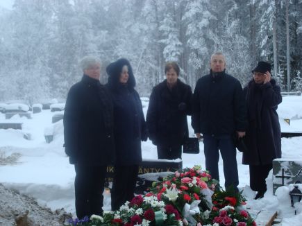 ![]() Tyyne Mäntylä saateltiin haudan lepoonTyyne Mäntylä siunattiin Kyyjärven kappelissa lauantaina 16.1.2010 ja muistotilaisuutta vietettiin hautauksen jälkeen Kivirannassa. Tyyne Regina Mäntylä syntyi juhannusaattona v.1919 Tyyne ja Timo Mäntylän perheeseen. Tyynen ollessa lapsi äiti kuoli. Lapsuuden päivät olivat Oikarin Mäntylässä. Hänellä oli Eino veli ja sisaret Eeva, Vieno sekä sisarpuoli Lyydia. Isän uudesta avioliitosta Hilma äidin kanssa syntyi lisää sisaruksia: Impi, Erkki, Martta, Sirkka, Heikki, Tiina, Vappu ja Eila. Nuorena hän pääsi Laukaan Kuhankoskelle kouluun ja töihin, jota kestikin 30 vuotta. Sirkka sisar nouti hänet Suolahdesta kotiinsa "Rinneahoon", jossa Tyynellä oli oma huone. Lähes 30 vuotta Tyyne asui kotikylällään. Voimien heikennyttyä hän siirti Kivirantaan, josta käsin osallistui Touhulan toimintaan. Tyyne elämässään tukeutui sisaruksiin ja läheisiin. Viimeiset ajat olivat sairauden täyttämiä. Hän nukkui pois joulun alla 22.12.2009 Karstulan sairaalassa yli 90 vuoden iässä. Tyyneä jäivät kaipaamaan sisarukset perheineen ja muut läheiset. Siunauksen toimitti khra Olavi Vallivaara, kanttorina oli Minna Erkkilä, joka esitti yksinlaulua siunaustilaisuudessa ja suntiona Alpo Noponen. Muistotilaisuudessa seurakunnan työntekijöiden lisäksi adressit luki ja Tyyneä muistelivat läheiset. |
