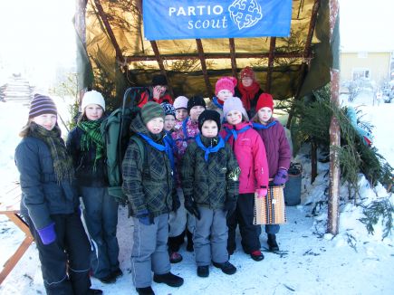 ![]() Pakkasta ja räiskäleitäSatavuotiaan partioliikkeen kunniaksi tempaistiin Paletin edessä Kokeilipa pakkasherra Kyypartion apuvoimia lauantaina aamuaikaisella, kun laavun pystytys aloitetiin. 22 asteen pakkanen ei kuitenkaan pystynyt hidastamaan Kyypartiota avustamaan tulleen "äijäenergian" vauhtia laavunpystytyksessä. Niin se nousi melkein täydellinen havulaavu Paletin pihalle hyvissäajoin ,että partion naisenergia pääsi kääntämään räiskäleitä. Osa energiasta toimi markkinahenkilöinä kaupaten arpoja.Voittoja olimme saaneet runsaasti ja kauppa kävi Räiskäleiden kanssa kilpaa tirisivät "RistonGrillin" käristeet, nämä niin suositut suomalaiset "vihannekset. Tempauksen tarkoituksena oli tehdä satavuotiasta Suomen partioliikettä tunnetuksi. Paikalla pyöri parikymmentä sudaria ja seikailijaa, välillä laskien pulkamäessä, välillä arpoja myyden.Ehtivät he käydä myös Paletissa sisällä, jossa pelle hauskutti lapsia jutuillaan ja ilmapalloeläimillään(vai mitenkä se oli?) Siellä oli myös mahdollisuus saada kasvoihinsa kunnon sotamaalaus tai jotain nätimpää. Tilaisuuden arvanmyynnillä paikattiin lippukunnan rahatilannetta, sillä kevään toimintasuunnitelmassa on muunmuassa lippukunnan yhteinen retki Kallioplanetaarioon Nyrölään sekä kesäkuussa kesäleiri. Näistä tapahtumista lisää tietoa myöhemmin. Koska partion toiminta-aatteeseen kuulu auttaminen sekä kansainvälisyys, luovutettiin osa (30%) arpajaisten tuotosta Kirkon Ulkomaanavun Yhteisvastuukeräykseen, jossa tänä vuonna avustuskohteena ovat sekä kotimaassa että Haitilla vähävaraisten perheiden lapset. Suuret kiitokset kaikille niille yrityksille ja yksityisille, jotka lahjoittamillaan hyvillä voitoilla mahdolistivat arpajaiset. Mahtavat kiitokset myös "äijäenergialle" eli Lahtisen Laurille, Pölkin Reinole ja Ristolle sekä Kantosen Jarille laavun pystyksestä sekä purkamisesta. Suuret kiitokset kuuluu myös lippukunnan omille vetäjille, aina energisille laumanjohtajille, jotka huolehtivat arpajaisista sekä räiskäleen kääntämisestä. "Riston Grillille" kiitokset makarasavotasta. Hyvää laskiaista ja pitkiä pellavia lpkj Kyy Eki PS Sunnuntaina 21.2. klo 16.00 on Kyypartion vuosikokous. Jos olet kiinnstunut lippukunnan tulevaisuudesta eli tulevasta toiminnasta, ei muuta kuin Partiokololle kirkon alakertaan kuulemaan ja keskustelemaan