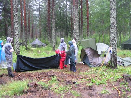![]() Mitä kuuluu Kyypartiolle?Kiitos kysymästä, toimintaa sille kuuluu. Toimintaahan partiolle kuuluu ja sitä on riittänyt. Syksyllä mukaan tuli useita uusia sudareita ja touhuissa on ollut matkassa nelisenkymmentä sudenpentua, seikkailijaa ja tarpojaa sekä muutama samoaja. Vaeltajat meiltä valitettavasti puuttuvat. Kuluvan toimintakauden alussa siirryttiin Kyypartiossa lopullisesti uuden ohjelman edellyttämiin ikäkausiryhmiin ja ohjelmiin. Muutos on ollut haaste Kyypartion vetäjille eli laumanjohtajille ja vartionjohtajille. Hyvin on muutoksesta selvitty vaikka tiukkaa tuppasi tekemään aika-ajoin. Syyskausi päättyi joulukuun puolivälissä yhteiseen pikkujouluun. Sitä ennen oli marraskuussa lupauksenanto partiokirkossa ja tällä kertaa se toteutettiin uuden ohjelman mukaan. Talvikausi aloitettiin tammikuun toisella viikolla ja kevään aikana on tavoitteena saada valmiiksi syksyllä aloitetut sudenpennun jäljet ja sekkailijoiden ilmansuunnat. Uudet nimitykset kuulostavat epäilemättä vielä hieman oudoilta, mutta pian ne tutuksi tulevat. Muutosta on paljon, mutta miksi? Tänä vuonna Suomen Partiolaiset täyttävät täydet 100 vuotta ja sen vuoksi tai kunniaksi on partiotoiminta uudistettu monella tavoin. Ensinnäkin ikäkausirymät on uusittu vastaamaan paremmin lasten/nuorten kehitystä ja toiveita. Uudet ryhmät ovat sudenpennut / 7v- 9v, seikkailijat/ 10v-12v, tarpojat/ 12v-15v, samoajat/ 15v-18v , vaeltajat/ 18v-22v sekä aikuiset 22v+. Uutta on myös se, että vetovastuussa olevien johtajien tulee olla aiempaa vanhempia eli vaeltajaikäisiä tai aikuisia. Myös partiolaisten vanhempien toivotaan osallistuvan toimintaan avustajina. Erityisesti Kyyjärven kaltaisilla paikkakunnilla tämä on tervetullut ajatus. Partion 100-vuotistaival Suomessa näkyy toiminassa läpi vuoden. Valtakunnallinen aloitustempaus on 13.-14. helmikuuta eli ystänänpäivän viikonloppuna jolloin sadat lippukunnat ympäri maan järjestävät erilaisia näkyviä tapahtumia. Kyyjärvellä tempaistaan lauantaina 13. helmikuuta Paletin pihassa . Tarkoitus on rakentaa laavu ,jossa on mahdollisuus räiskälettä mutustellessa saada tietoa partion toiminnasta. Vuoden suurin tapahtuma on ilman muuta Suurleiri Kilke Evolla kesä-elokuun vaihteessa. Leirille tulee noin 10000 partiolaista. Toukokuussa on myös Kyypartiolla yksi virstanpylväs partiomatkallaan. Lippukuntamme täyttää silloin 25 vuotta eli neljännes vuosisadan. Josko sitä juhlistetaan jotenkin ,selvinne vuosikokouksessa 21. helmikuuta klo 16 Partiokololla. Sinne toivotaan myös partiolaisten vanhempia mukaan kuulemaan mitä tuleman pitää sekä tuomaan mahdollisia ideoita ja ehdotuksia toimintaan( ei tarvitse pelätä, väkisin ei ketään sidota eli "nakiteta") Kevään toimintaan on suunniteilla ainakin käynti Planetariossa jyväskylässä sekä JOTT -vaellus eli päivän kestävä polkuvaellus jossa tutkaillaan kevään tuloa. Retki on tarkoitus suunnitella perhetapahtumaksi eli ei vaikeaksi. Kesäkussa on suunnitteilla kesäleiri jossain lähialueella. Ehkäpä Ahon apassit heräävät taas henkiin. Toteutuminen riippuu siitä saadaanko riittäävä määrä vetäjiä ja (yö-) valvojia. Koloillat jatkuvat sovitun ohjelman mukaan viikottain toukokuussa pidettävään päätökseen. Tarkempi tapahtumakalenteri saadaan vuosikokouksen jälkeen. Tavataan tapahtumassa Kyy Eki Ps. Alkukuva on Suurleiri Tarukselta jota jotkut nimittivät "vesileiriksi" sillä vettä satoi puolet leirin ajasta ja lujaa. Kyypartiosta leirille osallistui 5 tyttöä sekä allekirjoittanut. |