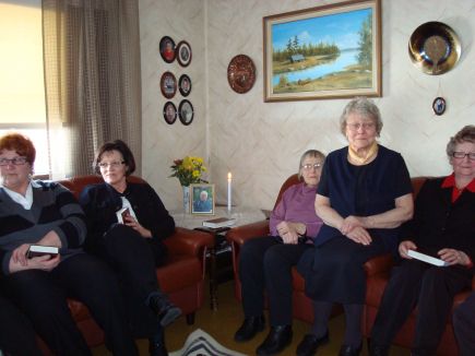 ![]() Niiloa muisteltiin Näreahon kodissaNiilo Näreahon muistoseurat oli Pirkko Näreaholla Pölkissä sunnuntaina 7.3.2010. Runsas vuosi on kulunut Niilo Näreahon kuolemasta. "Suolammen" kodissa, Näreaholla, oli Niilo puolison, isän ja vaarin kuva keskeisellä paikalla pöydällä, sunnuntain, muistoseuroissa. Niilo Näreaho sai elää runsaat 80 vuotta. Niilo oli syntynyt Kivijärven Lummelammella. Elämäntiet yhdistyivät Pirkon kanssa v.1954. Ensimmäinen yhteinen koti oli Suokannassa. Yhdessä käytiin työmatka Ruotsissa ja Suolammen koti hankittiin v.1964. Talo ja navetta kunnostettiin ja pellot raivattiin. Kovasti uurastettiin omalla tilalla. Avioliitosta syntyi 4 lasta. Niilo oli luonteeltaan iloinen ja auttavainen. Monet hyvät muistot ovat jääneet puolisolle ja lapsille ja lastenlapsille Isästä ja vaarista. Ne ovat antaneet voimaa eronikävän keskelle. Muistoseuroissa oli päällimmäisenä kiitollinen mieli yhdessä eletyistä vuosista. Monta virttä laulettiin yhdessä muistoseuroissa, jonne oli kokoontunut runsaasti läheisiä, tuttuja ja naapureita. Khra Olavi Vallivaara puhui ja muisteli Niiloa. Samoin Taisto Lahtinen muisteli tuttua kyläläistä. Kanttorina toimi Juliana Muli. |