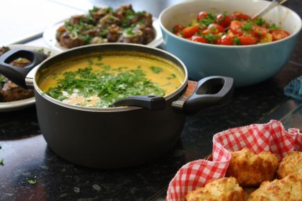 Aurinkoiseen kasvissosekeittoon kasvisten pilkkominen kävi nopsasti