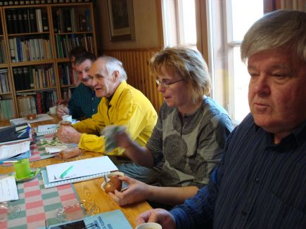 ![]() Pulla maistui kirkkoneuvostollekinKirkkoherra tarjosi kirkkoneuvostolle "pullakahvit" kokouksen aluksi tiistai-iltana 13.4.2010. Kirkkoneuvosto käsitteli tilinpäätösasiakirjat vuodelta 2009. Vuosikate näytti niukasti plussaa 2500,21 euroa. Tulos oli hyvä, kun kysymyksessä on pieni seurakunta ja nykyiset työpaikat, toimintamäärä ja kiinteistöt on kyetty säilyttämään. Hyvään taloudelliseen tulokseen vaikutti verotulojen lisäys. Kyyjärvellä on ollut hyvä työllisyystilanne lamasta huolimatta.Seurakunnan toiminnan todettiin pyörineen hyvin samaan tyyliin kuin ennen. Kirkossakävijämäärä hieman laski, mutta ehtoollisella kävi aikaisempaa enemmän. Hautauksia oli edellisvuosia vähemmän. Lähetystyön johtokunnan esitys uusiksi nimikkoläheteiksi hyväksyttiin. Uudet nimikkolähetit ovat Liisa ja Antti Saarenketo, jotka toimivat Keniassa. Nykyinen nimikkolähetti Tuula Leppänen jää eläkkeelle 31.7.2010. Kirkkoneuvosto valitsi uudeksi kiinteistöjen vakuuttajaksi Pohjola yhtiön korjatun tarjousvertailun pohjalta. Päätettiin Karstulan seurakunnan tavoin antaa palkanlaskenta Rauhala yhtiön hoidettavaksi. Seurakunta päätti varata oman paikan Suomenselkämessuille 16-18.7.2010. |