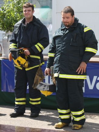 ![]() SUOMEN VAHVIN PALOMIESPARI KISAN VOITTO KIVIJÄRVELLE.Suomen vahvin palomiespari leivottiin aurinkoisessa säässä Suomenselkämessujen yhteydessä Kyyjärvellä. Yllä kuvassa Kivijärven voittajajoukkue Jukka Oinonen ja Terho Turpeinen. Kilpailulajeista kaikki vaati kovaa kuntoa, vahvaa selkää ja lihaksia, sekä tietysti hyvää parityöskentelyä. Ensimmäisenä lajina parit vetivät n. 12 tonnin painoista paloautoa 20 metriä. Toinen laji oli yhdistetty renkaanpyöritys ja letkutelineiden kanto. Suorituksessa piti molempien kääntää 150 kg painava rengas 6 kertaa ympäri ja kantaa kummassakin kädessä 80 kg painavaa letkutelinettä 40 metrin matka. Jättiläisen sormi on laji, jota käytetään myös maailman vahvin mies kisassa. Kyyjärvellä miehet joutuivat tässä lajissa kääntämään yli 100 kiloista tukkia kaverille ja takaisin niin, että kumpikin teki 5 kääntöä. Säkinkannossa kannettiin 70 kg hiekkasäkkejä lavalta toiselle 8 metrin matka. Kova kisa siis, mutta kovia oli miehetkin, jotka kisaan osallistuivat. Kivijärven joukkue ,Jukka Oinonen ja Terho Turpeinen suoriutuivat joka lajista parhaiten voittaen ansaitusti Suomenmestaruuden. Molemmat miehet ovat osallistuneet voimailukisoihin aikaisemmin. Jukka Oinonen oli mm. Keski-Suomen vahvin mies kilpailussa jaetulla ykköstilalla viime vuonna, ja Terho Turpeinen Kivijärven vahvin mies vuodelta 2004, mutta parina kisailtiin ensimmäistä kertaa. Kyyjärven kaksikko, viime vuoden Ensi vuonna kisataan sitten Kivijärvellä