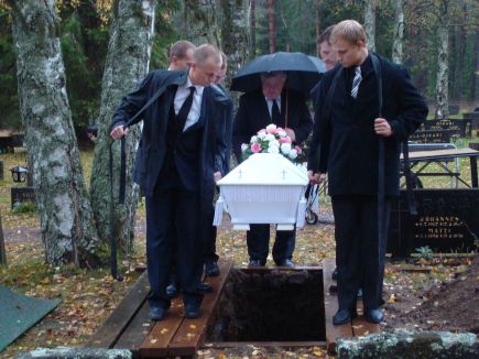 ![]() Anna-Liisa Rajamaa nukkui poisAnna-Liisa Rajamaa siunattiin Kyyjärven kappelissa lauantaina 25.9.2010. Muistotilaisuus oli hautauksen jälkeen seurakuntasalissa. Anna-Liisa Rajamaa e.Hietala syntyi Perhossa 12.8.1920. Hän varttui maatalouskodissa kolmen veljen ja yhden sisaren kanssa. Hänen nuoruusvuosiaan varjosti sotavuodet. Anna toimi sodan aikana ilmavalvontatehtävissä. Sodan jälkeen hän tutustui tulevaan puolisoonsa Johannes "Jussi" Rajamaahan. Jussi oli syntynyt Amerikassa ja lapsuusvuotensa elänyt Turun läänin Koskella. Heidät vihittiin avioliittoon v.1947 Perhon kirkossa. Kyyjärvelle perhe muutti v.1948, jolloin hankittiin talon paikka, Jokela, Hannes Kivipellolta. Avioliitosta syntyivät lapset: Pirkko, Leena, Marjatta ja Maija. Matti kaksoispoika kuoli kuuden viikon ikäisenä v.1958. Puoliso Jussi Rajamaa oli automies. Hän oli toiminut kuorma-auto yrittäjänä Helsingissä ja oli sodassa mukana automiehenä. Kyyjärvelle rakennettiin autotalli, jonka yläkertaan tuli perheen koti. Myöhemmin viereen rakennettiin erillinen koti ja 1960-luvun alussa uusi koti ja autotalli. Linja-auto liikennennettä harjoitettiin pitemmillä linjoilla ja Kyyjärvellä. Anna hoiti kotona lapsia, tekii taloustyöt ja kokkasi alkuaikoina työmiehille. Anna oli taitava käsistään. Hän kutoi, virkkasi, teki mattoja ja maalasi posliinia. Hän oli seurallinen ja erityisesti lasten ollessa pieniä pidettiin sukulaisiin tiiviisti yhteyttä. Hän oli innostunut matkailusta. Jo 1950-luvulla yhdessä Jussi puolison kanssa he tekivät linja-autolla matkoja Ranskaan, Italiaan ja Saksaan. Jussi puoliso sairastui vakavasti ja nukkui pois v.1967. Anna oli 46 vuotias jäädessään leskeksi. Hän rohkeasti jatkoi vuosia vielä yritystä, pitkään autonkuljettajana toimineen Toivo Ruuskan ja käsistään taitavan Antero Huhtalan avulla. Lapset kasvoivat ja vähitellen lähtivät kotoa pois omaan elämään. Vanhuuden päivinä hän sai omistautua käsityö ja posliinimaalaus harrastukselleen ja kävipä hän vielä ulkomaillakin. Viimeiset elämänvuodet Anna oli Kivirannan vanhainkodissa. Hän nukkui pois 90 vuoden iässä 3.9.2010 Annaa jäivät kaipamaan lapset perheineen, sukulaiset ja ystävät. Siunauksen kappelissa toimitti khra Olavi Vallivaara, kanttorina oli Minna Erkkilä ja Jussi soitti huilulla mummon muistolle "Leivästä enkelten." Lastenlapset kantoivat Anna mummonsa Jussi puolison ja Matti pojan viereen. Muistotilaisuudessa laulettiin läheisten valitsemia virsiä, kirkkoherra puhui, Pirkko ja Maija tyttäret muistelivat äitinsä ja perheen yhteistä elämää ja lopuksi luettiin adressit. |