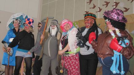 ![]() Koulussa näkyi kummiaPäivänä muutamana hiipparoi koulun käytävillä erikoisen näköisiä tyyppejä. Mitähän tämä oikein oli? Kerrankin oppilaat saivat itse päättää, minkä näköistä opettajaa he haluaisivat päivän mittaan katsella. Ja meitähän oli sitten moneksi. Opettajan pukeminen oli samalla myös kilpailu. Päivän päätteeksi arvoisa raati palkitsi luokan, joka oli parhaiten pukenut opettajansa. Eivätkä muutkaan jääneet nuolemaan näppejään. Vaan kuvat puhukoot puolestaan! |