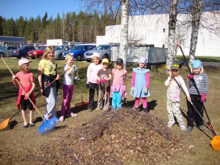 Tänään on siivouspäivä, ei paina mikään huolen häivä. On hauskaa olla auringossa, on kivaa haravoida kiireessä kovassa! On lehtiä tippunut syksyllä puusta, ja paljon kaikkea muuta. Kiva päivä tämäkin on ollut ja tulee vielä olemaankin. Terveisin Nopolan ahkerat hortonomit eskareista kutosiin