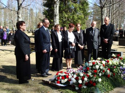 ![]() Laina Ahlqvist nukkui poisLaina Ahlqvist siunattiin lauantaina 7.5.2011 Kyyjärven kappelissa. Muistotilaisuus oli hautauksen jälkeen Kivirannassa. Laina Maria Ahlqvist e. Luomala syntyi 10.1.1918 Vehkaperän Takalassa, Roosa ja Taavetti Luomalan tyttärenä. Isä kuoli Lainan ollessa pieni tyttö. Hän oli yhdeksänvuotiaasta lähtien taloissa palveluksessa, ensimmäinen palveluspaikka oli Ansaharju Vehkaperällä. Sen jälkeen hän oli Ilolassa Kyyjärvellä, Isossakyrössä,Lapualla ja Vetelissä. Laina kihlautui saman kylän pojan, Jalmari Ahlqvistin kanssa. Heidät vihittiin avioliittoon maaliskuussa 1940. Vihkitilaisuuteen, Laikan pappilaan, mentiin polkupyörällä. Vihkimisen jälkeen tuore aviomies lähti Talvisotaan ja morsian palasi Kyyjärvelle. Laina yöpyi Ilolassa, jossa Maria emäntä antoi hänelle lampaan häälahjaksi. Loppumatka Vehkaperälle taittui lampaan kanssa. Jalmari puoliso haavoittui sodassa kaksi kertaa, toisella kertaa vakavasti Karhumäessä. Hän oli 100% invalidi. Sodan jälkeen yhteinen elämä jatkui Vehkaperän Linjalassa. Avioliitosta syntyivät lapset: Annikki, Matti, Hilma, Johannes, Sirkka, Hilja-Leena, Esteri, Kari ja Keijo. Kari nukkui pois pienenä lapsena. Isä Jalmari oli metsätöissä ja tietöissä invaliditeetistä huolimatta. Alkuaikoina hän kulki polkupyörällä kesät - talvet ja myöhemmin mopedilla. Laina äiti hoiti kotona isoa perhettä ja kotitöiden lisäksi hoiti karjaa. Yhdessä hankittiin karjalle ruoka. Jalmari puolison keuhkovamma kävi ajan mittaan huonommaksi ja hän joutui usein sairaalaan. Hän nukkui pois heinäkuussa 1970. Äiti jatkoi jonkin aikaa karjanhoitoa Linjalassa ja eläkepäiviään yhdessä Keijon kanssa. Kyyjärvellä Laina eli yhteensä 13 vuotta. Aluksi vanhustentalossa ja loppuajan Kivirannan vanhainkodissa, jossa hän nukkui pois 13.4.2011. Laina oli luonteeltaan ahkera, puhelias ja elämänmyönteinen. Hän osasi ulkoa monet virret ja Siionin kanteleen laulut. Lainaa jäivät kaipaamaan lapset perheineen, sukulaiset, ystävät ja muut läheiset. Siunauksen kappelissa toimitti khra Olavi Vallivaara. kanttorina oli Juliana Muli ja suntiona Alpo Noponen. Muistotilaisuudessa laulettiin yhdessä Lainan lempivirsiä, kirkkoherra puhui, lastenlapset lukivat adressit ja ystävät muistelivat Lainaa. |