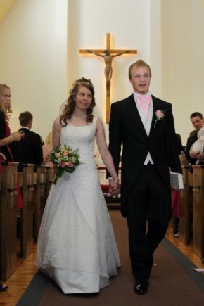 ![]() Annikan ja John-Eerikin keväthäätTaina ja Raimo Noposen perheessä vietettiin viikonloppuna iloista hääjuhlaa. 14. toukokuuta morsiamen isä saattoi tyttärensä Kyyjärven kirkon alttarille. Sieltä alkoi Annika Noposen ja John-Eerik Sivulan yhteinen elämänmatka. Vihkipappina toimi Olavi Vallivaara, sormuspoikana Annikan pikkuveli Aleksi ja morsiustyttöinä suloiset Helmiina ja Elle-Olivia. Sulhasen veli Juha-Matti lauloi. Hääjuhlaa vietettiin Kivirannassa, joka oli koristeltu kauniisti ja keväisesti. Ruokailun jälkeen hääparin kotiväki ja ystävät esittivät monipuolista ohjelmaa. Hääpari ja noin 150 häävierasta saivat kuulla useita puheita ja musiikkiesityksiä. Ohjelmassa oli myös muutama hauska hääleikki. Tunnelma vaikutti rennolta ja mukavalta. Parikymppiset Annika ja John-Eerik olivat onnellisen oloinen hääpari. Yhteinen elämä alkaa sulhasen remontoimassa kodissa Alajärven Hoiskossa. John-Eerikin vanhemmat Suvi ja Risto Sivula asuvat myös Alajärvellä. Onnea ja Taivaan Isän siunausta Annikan ja John-Eerikin avioliittoon! Se alkaa aivan hiljaa kuin tuuli keväinen. Ja äkkiä vain huomaat on siinä ihminen. Hän unelmasi jakaa, hän heti ymmärtää. Hän viipyy vierelläsi, hän elämääsi jää. (Anna-Mari Kaskinen) teksti: Marjaana Nikoskinen kuvat: Juha Humalajoki