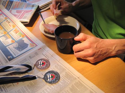 ![]() Elokuu käyntiin mitalikahveillaHerään puhelimen ääneen, kello 08.39. Sängyn vasen puoli on tyhjä. Vai niin, taas se on lähtenyt..aamulenkille!