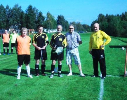 ![]() Esa Lintulahden seitsemän vuosikymmentä pallokentällä!Tänä vuonna 2011 tuli täyteen seitsemän vuosikymmentä kun tämä ikiliikkuja on pelannut virallisia sarjaotteluita. Kyyjärven KyKy, Karstulan Kiva ja Palloliiton Keski-Suomen piiri päätti muistaa pitkäaikaista jalkapalloilijaa VIP-Paketilla Suomen Miesten jalkapallo maajoukkueen EM-karsinta otteluun Suomi-Hollanti. Jalkapallo rantautui Kyyjärven kylälle vuonna 1962 kun postinhoitaja Niilo Itäniemi toi ensimmäisen jalkapallon pitäjään. Kylän nuoret kertoivat Esa Lintulahdelle, että kentällä on oikea jalkapallo. Esa oli tulossa hevosella peltoja jyräämästä ja sitoi hepan Aaltosen Ollin tuvan nurkalle ja lähti vauhdilla kentälle. Tätä ennen Esa oli ehtinyt pelata jo sarjaotteluita 50-luvulla pesäpallon puolella. Jalkapalloa pelattiin muutama vuosi KyKyn riveissä lähinnä Karstulan, Isokylän kuuluisaa joukkuetta ja muita Karstulan kyläsarjan porukoita vastaan. Vuonna 1966 Esan matka vei Paimioon ja siellä jalkapalloura jatkui Paimion Hakassa ja samalla pesäpalloa Tarvaskosken joukkueessa. Lounais-Suomesta matka jatkui Savonlinnaan. STPS:n riveissä vuosi ja sitten ympyrä sulkeutui. Esa palasi takaisin kotikonnuille ja Karstulan Kivan edustuksessa mentiin niin vihille ja viheriölle tai hiekalle. 1970-luvun alussa kasattiin Kyyjärven Kyvyn riveihin jalkapallo porukka ja lajin nousu alkoi Nopolassa. Legenda niitti kunnioitusta ja vihaa kuuluisilla maaleillaan, ruskeat nahkakäsineet ja miehen nopeus harmitti monien matsien jälkeen vastustajien mieltä. 1980-luvun alkutaipaleella Kyky kipusi aina IV-divarin yläpäähän ja aiheutti suurta päänvaivaa vastustajissaan. Vuosikymmenen lopulla Esa katkaisi ainaisen kitinän kuuluisasta Kyyjärven sementin kovasta hiekkakentästä. Mies rakensi omalle maalleen viljelyspellolle hyvän nurmikentän. 1990-luku oli taas uusin voimin KyKy:n rynnistystä nelosessa, Esa toimi seuran Pj:na ja palkkasi futiksen ex-ammattilaisen Steven Clarkin seuran riveihin. KyKyn juniorit saivat oivan mahdollisuuden nousta lajissa eteenpäin. Vuosikymmenen lopulla alkoi Mr. jalkapallo haaveilla ikämiesten peleistä ja suuntasi tiensä Valkeakosken Hakan harkkamatsiin. Lopputulos voitto Hakalle ja sopimus ekaan turnaukseen. Turnauksen maalikuninkuus riitti jatkosopimukseen Hakassa ja alkoi edelleen jatkuva kierto maan eliittijoukkueissa ikäistensä kanssa ja välillä nuorempienkin. Lauantaina 27.8.2011 Kyyjärven nurmikentällä pelatussa Kiva – Multians 5.divarin ottelussa jälleen näimme herran taidot. Ajatella syksyllä mies saavuttaa 69 ikävuotta ja mies on vieläkin täyttä terästä! |