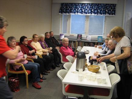 Syyskuussa kokoonnuimme kirjastoon. Nautimme kodikkaasta tunnelmasta ja Maaritin ansiokkaasta kirjaston esittelystä. Mikä aarreaitta meillä onkaan käytettävissä: voimme lainata kirjoja ja musiikkia, liikkuvaa kuvaa ja kuultavaa tekstiä, käydä lukemassa lehtiä ja katsomassa näyttelyitä. Mukava tapaaminen, kiitos! Nyt lokakuussa tapaamme ke 12.päivänä kello 12 Kivirannassa. Huomio muuttunut kellonaika (seniorijumppa kun on keskiviikkoisin klo 10-11). Päivän aiheena on hyvinvointi ja me itse. Perinteistä pidämme kiinni: kahvittelua ja juttelua, Pekan johdolla lauleskelua ja arpajaiset. Jos sää vain suinkin sallii, menemme tutustumaan liikuntapuistoon koulun pihamaalle Aarton johdolla. PS. Vähän on surkeasti otettu kuva: kuka uskoisi, että olemme kirjastossa. Porukkaa oli lähes neljäkymmentä. Huomio: Honkasen Jaana tulee esittelemään "hyvän olon" tuotteita (Oriflame). |