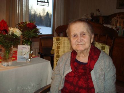 ![]() Maria Niskala täytti 90 vuotta!Joulupäivänä täytti 90 vuotta Maria Niskala kotonaan Lähdekummussa. Juhlia vietettiin Joulu- ja Tapaninpäivänä sukulaisten ja ystävien kanssa. Maria Niskala (o.s. Saunamäki) syntyi 25.12.1921 Saunakylän Saunamäellä samana päivänä kaksoissisarensa Martan kanssa perheensä 4. ja 5. lapsena. Marian äiti oli tuolloin vain 21-vuotias. Kaikkiaan perheeseen syntyi 10 lasta, joista kahdet olivat kaksoset. Tästä voi päätellä, että lapsuudessa riitti vilskettä ja leikkikavereita omasta takaa. Koulunsa Maria kävi Saunakylän koulussa. Nyt sisaruksista on Marian lisäksi elossa Ilmi-sisar Karstulassa ja Sisko Saarijärvellä. Nuoruuspäivinä Maria löysi puolisokseen Matti Niskalan, jonka kanssa vihittiin avioliittoon vuonna 1945. Avioliiton myötä Marian tie toi Saunakylältä Kumpulaan, Lähdekumpuun, jossa alkoi ahkera työ vaimona, äitinä ja maatalon emäntänä. Avioliitosta syntyivät lapset Aira, Maija ja Kaisa. Kaisa sai elää vain vuorokauden. Lisäksi Marian ja Matin perheessä kasvoi Matin veljen Pauli-poika 2-vuotiaasta aina aikuisuuden kynnykselle. Monta askelta on Maria saanut pihassa ja tuvassa ottaa. Vapaa-aikaa ei paljon jäänyt, mutta rakkain harrastus oli käsityöt. Maria ehti kutoa muun työn ohessa lukemattomat matot, ryijyt, raanut ja tehdä muut käsityöt. Lapset kasvoivat ja lensivät pesästä - Aira Kivijärvelle, Maija Myllykoskelle ja Pauli Vaasaan. Matti-puoliso sairastui ja kuoli lyhyen sairauden jälkeen 12.5.1997. Maria hoiti Mattinsa kotona loppuun asti. Yhteisiä vuosia heille kertyi lähes 52. Maria jatkoi elämäänsä kotonaan Lähdekummussa, viime vuodet Maija-tyttären hyvässä hoidossa. Muutaman kuukauden Maria on nyt asunut pääasiassa Kivijärven Hopearannassa, mutta sieltäkin on saanut jo monta kertaa tulla lomalle kotiin Maijan kanssa. Näin nytkin syntymäpäivää ja joulua juhlimaan rakkaiden lasten, lastenlasten ja lastenlastenlasten kanssa. Toivotamme Marialle Onnea ja Taivaan Isän siunausta jokaiseen elämän päivään! |