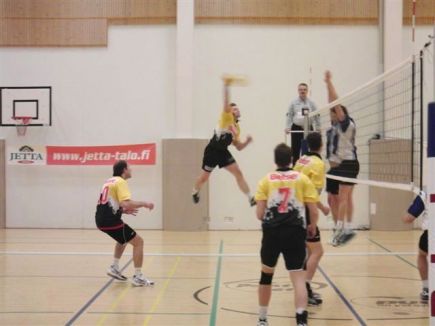 TKT vs KyKy-Betset 0-3 (23-25)(15-25)(13-25) TKT Tampereelta sai nöyrtyä betonimiesten käsittelyssä viikonloppuna kahteen kertaan. Perjantaina Hervannassa Kisatoverien vieraana oli tyly haalariporukka. Tehtaalta startattiin Margitin riistakäristyksen voimalla ja eväs auttoi vierasvoittoon 0-3. Ensimmäisen erän alkua TKT hallitsi lukemiin 11-6. Tästä alkoi meidän nousu ja sen jälkeen tiukan väännön jälkeen erä 23-23 tilanteesta Nopolaan. Argon pateri ja Jaskan torjunta olivat kaksi viimeistä tikkiä. Seuraavat erät olivat kosmetiikkaa ja alkoi keskittyminen sunnuntain kohtaamiseen. Hervannassa Kultaisen Apinan palkinto Madikselle. Pyhäpäivä pelipäivä. Taas oli voitosta tapeltava mikäli jatkoon haluttais. Kisatoverit tuli nyt hurjalla latingilla. Alkukankeuden jälkeen saatiin mylly käyntiin ja katsomo sai nähdä kevään parhaan näytöksen. Hurjasti taistellut TKT törmäsi usein betoniseinään tai sitten Kyky iski vastustamattomasti hyökkäykset Manselaisten kenttään. Erin 3-0 pinnat kotiin ja TKT lähti kesän viettoon. Palkintoraati oli suurimmissa vaikeuksissa kotijoukkueen suhteen. Harkinnan jälkeen Järveots nappasi toisen kerran pytyt kotiin viikonloppuna, TKT:n paras oli kokenut vasuri Ossi Vesanen. Betonimiehistön suoritus viikonloppuna oli kiitettävää tasoa. |