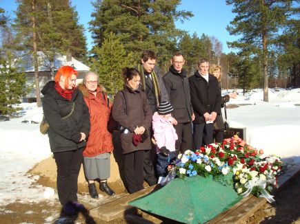 ![]() Eeva Saarenketo saateltiin puolisonsa viereenEeva Inkeri Saarenketo siunattiin lauantaina 3.3.2012 Kyyjärven kappelissa. Hautauksen jälkeen muistotilaisuutta vietettiin Kivirannassa. Eeva Inkeri Saarenketo e. Niskala syntyi Kumpulassa 5.10.1918. Hänen vanhempansa pitivät kauppaa Kumpulan kylällä. Eeva kasvoi sisarussarjan keskellä ja oppi elämän perusasiat omassa kodissaan. Kansakoulun hän kävi kotikylän Kankaalan talossa, jossa pidettiin myös pyhäkoulua. Eevan ollessa tyttönen äiti kuoli. Jo 13-vuotiaana hän lähti Jyskylään palvelukseen. Rippikoulun käytyään hän oli Rautalammilla palveluksessa. Hän palasi takaisin Kyyjärvelle. Jalosen kauppaan Oikarille avautui työpaikka Eevalle. Hän oli taitava ja ahkera työntekijä. Niinpä hänellä olikin töitä vuosia Jalosen kaupassa. Kaupan yhteydessä oli leipomo. Aamuyöstä alkoi uunien lämmittäminen ja taikinan vaivaaminen ei koneilla vaan käsin. Monet ruisleivät, pullat ym:t leivokset Eeva käsillään valmisti. Kun leipomo loppui Oikarilta, Eeva jatkoi töitä kaupassa. Oikarin kylältä löytyi Pekka puoliso, jonka kanssa Eeva sai elää pitkän avioliiton. Avioliitosta syntyivät lapset: Hanna Kaisa, Antti ja Tapio. Vähitellen lapset, koti ja maatalo vaativat Eevan ajan kokonaan ja kauppahommat muuttuivat äidin ja maatalon emännän askareisiin. "Kotipelto" oli Eevalle ja Pekalle rakas paikka, työ, perhe ja harrastus. He rakensivat oman kodin ja navetan Pekan kotitilan maille. Karjan- ja puutarhanhoito olivat mieluista työtä. Aikanaan lapset lähtivät omaan elämään ja vanhuuden myötä oli luovuttava rakkaista töistä. Eeva pystyi asumaan kotoonaan sairauksista huolimatta sisulla ja Pekka puolison tuella. Yllättävä elämänmuutos tuli kesällä 2009, kun Pekka nukkui pois. Saman vuoden syksyllä Eeva muutti Kyyjärvelle vanhustentaloon. Hän sopeutui uuteen elämäntilanteeseen hyvin ja riemullisia olivat ne hetket, kun sai lasten ja läheisten kanssa olla Oikarin kodissa. Eeva nukkui ikiuneen 13.2.2012, 93-vuoden iässä. Häntä jäivät kaipaamaan lapset, lastenlapset, sukulaiset ja läheiset. Eeva oli viimeinen elossaollut omasta Niskalan sisarusjoukosta. Siunauksen Kyyjärven kappelissa toimitti khra Olavi Vallivaara, kanttorina toimi Lotta Vallivaara ja suntiona Alpo Noponen. "Matkamiehen virren" soidessa omat pojat ja läheiset kantoivat Eevan Pekka puolison viereen Kyyjärven kirkkomaahan. Hautauksen jälkeen muistotilaisuutta vietettiin Kivirannassa. Tapio Saarenketo lausui tervetulo- ja päätössanat, kirkkoherra puhui, lastenlapset lukivat adressit ja yhdessä laulettiin virsiä. |