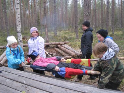 ![]() Hirrrveen hyvällä hirvikeitolla!Niin vaan viimein päästiin kevääseen ja luvattuun kevätretkeen. Näille seikkailijoille Metsola oli täysin uusi ja tuntematon retkikohde.