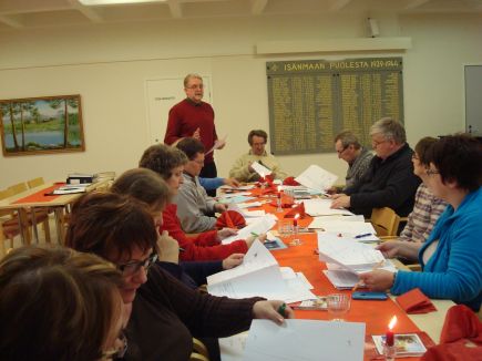 ![]() Kirkkovaltuuston joulukokousKyyjärven seurakunnan kirkkovaltuusto kokousti keskiviikkoiltana 19.12. jouluisissa merkeissä. Joulupuuro, torttukahvit, jouluevankeliumi ja joululaulut kuuluivat ohjelmaan Kivirannassa. Jouluisen tunnelman lisäksi painavana asiana käsiteltiin ensi vuoden talous- ja toimintasuunnitelma. Ensi vuosi on Kyyjärven seurakunnassa juhlavuosi. Kyyjärven kirkko täyttää 60-vuotta ja syksyllä, syyskuun lopussa, on piispantarkastus. Kirkkoa juhlitaan keväällä 3.3.2013 peruskiven muurauksen muistopäivänä, mikkelinä 29.9 ja joulun alla. Talousarviossa on varauduttu kirkon aidan kunnostamiseen, johon kirkkohallitukselta anotaan avustusta. Kirkkovaltuusto hyväksyi kirkkoneuvoston valmisteleman toiminta ja talousarvion vuodelle 2013 ja suunnitelman vuosille 2014-15. Toiminta jatkuu entisen laajuisena ja samalla työntekijämäärällä. Yhteistyötä Karstulan seurakunnan kanssa jatketaan. Taloutta pidetään yllä entisellä veroprosentilla. Vuosikate on arvioitu niukasti positiiviseksi, mutta tilikauden tulos poistojen jälkeen menee miinukselle -18.735 euroa. Kirkkovaltuusto hyväksyi kappelin kellohankkeen piirustukset ja asiaa ei tarvitse viedä kirkkohallituksen alistettavaksi. Kyyjärven seurakunta saa kappelin kellot lahjoituksena ja kellot on tilattu toimittajalta. Talouspäällikkö Kari Kemppainen arvioi Kyyjärven seurakunnan taloustilannetta kuitenkin hyväksi, koska seurakunnalla ei ole velkaa. Toiminta on monipuolista pieneksi seurakunnaksi. Jumalanpalvelukset pystytään pitämään omassa kirkossa, kinkerit ja seurat pidetään kylillä. Vapaaehtoisia riittää lähetys- ja diakoniatyöhön. Päiväkerhotyö pyörii pienillä määrärahoilla. Tiedotustoiminta on hoidettu edullisesti ja näyttävästi. Nopolanewsin kautta seurakunnan tiedot leviävät valtamerten taakse asti. Seurakunnan tapahtumat julkaistaan jatkossakin Torstai-lehdessä, joka ilmoittaa ne maksutta. |