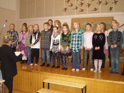 Juhlan alussa 2.-3.luokan oppilaat esittivät muutaman laulun. Laulujen jälkeen ruokailtiin ja rupateltiin kuulumisia puolin ja toisin. |