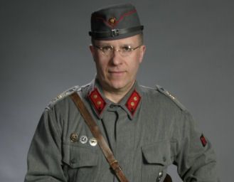 ![]() TenoriluutnanttiKyyjärveläinen Raimo Salo on kulkenut pitkän tien parrasvaloihin. Tenoriluutnanttina esiintyvä Raimo Salo laulaa kansallisromanttisia sota-ajan lauluja.Hän kertoo olevansa puolustusvoimien ainoa kapiainen, joka esiintyy trubaduurina sotilaaksi pukeutuneena. Maarit Vaaherkumpu kirjoitti Tenoriluutnantista Keskisuomalaisessa 3.3.2005 seuraavasti: Salo on laulanut niin kauan kuin muistaa. Hänelle on kerrottu, että jo kaksivuotiaana hän kipusi kotipihassaan kivelle esittämään laulujaan. Ensimmäisen kitaransa Salo osti 16-vuotiaana metsän istutuksessa tienaamillaan rahoilla. Vuosikymmenien varrella Salo on soittanut lukuisissa orkestereissa lähinnä tanssimusiikkia. Viime vuosina hän on esiintynyt yksin. Yhdenmiehen orkesterissaan hän soittaa kosketinsoittimia ja laulaa. Kesällä 2003 Saloa pyydettiin laulamaan Keuruun markkinoille vanhanaikaiseen kenttäkanttiiniin. Hän haali esitykseen vanhoja sotilaskamppeita ja lauloi muutaman sota-ajan iskelmän. Siitä Salolle syntyi ajatus laulavan upseerin hahmosta, jonka hän nimesi Tenoriluutnantiksi. (ps. voit käydä tutustumassa tarkemmin Tenoriluutnantin toimintaan osoitteessa www.vl-musiikki.fi) |