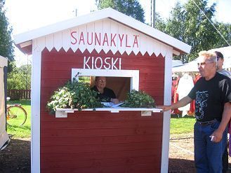![]() Nyt ne messut alkoivat!Suomen pienin kyläyhdistys esittäytyy suomenselkämessuilla Kivijärvellä. Yhdistys toimii kuten suuremmatkin vaikka jäseniä on vain parisenkymmentä. Kivijärven Saunakylän kyläyhdistys on pystyttänyt kioskin messualueelle. Kioskissa myydään saunavastoja. Myynnin tuotot menevät kyläläisten virkistystoimintaan. Yhdistys järjestää joka kesä elokuun ensimmäisen sunnuntain aikaan lauantai-iltaisin vanhanajan riihitanssit Korkeatuvalla. Meininki on vaatimatonta ja vanhanaikaista riukuvessoineen. Kylän väki on pukeutunut 40- 50-luvun asuihin. Seuraavat tanssit järjestetään 6.8.2005 kello 20-1. Tansseissa saa kokeilla varstalla puintia jokainen kynnelle kykenevä. Tarjolla on pullaa ja sokerikakkua. |