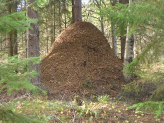 ![]() Tämä muurahaisten kerrostalo on luonnossa vaikuttava näkyKuvan muurahaispesän halkaisija on maasta mitattuna yli 4,5 metriä ja korkeutta sillä on reilusti yli 2 metriä. Sekametsäalueella sijaitseva komea muurahaisten koti sijaitsee Auma-ahossa Kyyjärvellä.Suuressa viisaudessaan pesä on sijoitettu pienelle kumpareelle, jottei veden kanssa tule ongelmia. Pesän koko on vuosien varrella vain kasvanut ja tuntuu että rajaa sen kasvamiseen ei näyttäisi olevan. Montakohan miljoonaa muurahaista siinä lienee, itse menin laskuissa sekaisin jo kymmenennen jälkeen , kun ovat niin toistensa näköisiä. Virallisesti Keski-Suomessa on tiettävästi yksi isompi pesä Keuruulla; pohjapinta-alaltaan pienempi, mutta vähän korkeampi. Tarkkaa viimehetken mittaustulosta ei ole suoritettu. Ainut uhka pesälle voisi olla karhu, joka hajottaisi sen. Jäämme mielenkiinnolla odottamaan kuinka isoksi pesä vuosien kuluessa kasvaa.