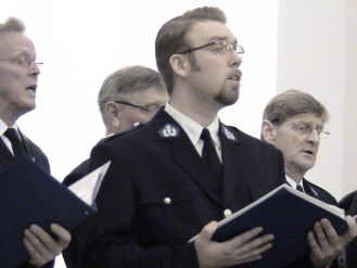 ![]() Etelä-Pohjanmaan Poliisilaulajat KyyjärvelläKyyjärveläiset pääsivät itsenäisyyspäivänä nauttimaan komeasta mieskuorolaulusta, kun Etelä-Pohjanmaan Poliisilaulajat konsertoivat Kyyjärven kirkossa esittäen monipuolisen lauluohjelmiston kristillis-isänmaallisessa hengessä. Komea joukko virkapukuisia poliiseja teki sävähdyttävän vaikutuksen jo astellessaan kirkon keskikäytävää pitkin kohti alttaria asettuakseen siellä laulujärjestykseen. Kuoron vanavedessä asteli kuoron johtaja, diplomilaulaja Arto Risku, ottaen kurinalaisen joukkonsa heti musiikilliseen hallintaansa. Yleisölle osoitettujen huomaavaisten ja ohjelmaa selventävien alkusanojen jälkeen poliisit kajauttivat nimikkolaulunsa, O. Jotunin sävellyksen "Lainvartija". Tämän jälkeen ohjelman ensimmäinen osio jatkui mm. laululla "Oi muistatko vielä sen virren", jossa solistina lauloi jykeväsävyinen basso Esa Kulmala, jonka käsialaa oli myös kuoron esittämä "Kellot"-laulu. Ennen kirkkoherra Olavi Vallivaaran puhetta ja kuoron ja yleisön yhdessä laulamaa virttä 581 poliisilaulajat esittivät mm. laulut "Pater Noster" ja "Kiitetty olkohon". Ohjelman toisessa osiossa oli hyvin vaikuttavia pianosäestyksellisiä lauluja, kuten tuttu "Suomalainen rukous" ja myös varmasti monen kuulijan ennestään tuntema "Synnyinseutu" ( "Hebrealaisten orjien kuoro" G. Verdin oopperasta Nabucco), joissa kuoron varajohtaja, director cantus Risto Lehtinen tuki kuoroa varmalla ja ammattimaisella säestyksellä. Mika Piiparisen "Oi katso mikä aamu" sykähdyttää aina; kuoro säesti stemmoillaan etualalla laulavaa solistia Mikko Takalaa, jonka tenoriin vivahtava baritoniääni soi laulussa kauniisti. Kuoron sointi oli yleisesti ottaen tasapainoinen, joskin jylhän leveä (ja upea) bassopohja kiinnitti kuulijan huomiota paikka paikoin johtoääntä enemmän.Tenorilla on aina avainasema mieskuorossa: Poliisilaulajien tenoriryhmä täytti tehtävänsä mallikkaasti laulaen oman osuutensa puhtaasti ja ennenkaikkea oikealla "tenorisaundilla". Täten on helppo yhtyä yleisön kommentteihin kertakaikkisen komeasta (siis nimenomaan KOMEASTA) mieskuorolaulusta, jota laulavat poliisit Kyyjärvellä tarjoilivat. Diplomilaulaja Arto Risku sai joukostaan irti sävyjä aina hiljaisesta pianosta voimakkaimpaan forteen. Tämä kyky käyttää äänenvoimakkuuden vaihteluja efektien luomiseen on kuoroille tarpeellinen taito, joskaan ei aina itsestäänselvyys. Poliiseilta tämä sävyjen tulkitseminen onnistui. Ylimääräisenä numerona yleisö sai vielä kuulla "Veteraanin iltahuudon", jossa Arto Risku esitti soolon Risto Lehtisen johtaessa kuoroa. Varsin sopiva päätös itsenäisyyspäiväillan konsertille.