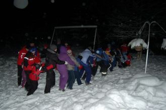 Hieman erilaiset, mutta partiomaiset pikkujoulut vietettiin perjantai-iltana pienessä pakkasessa, kynttilöiden luodessa tunnelmaa. Paikalla oli iso joukko partiolaisia vanhempineen. Haisu-hirviötä kurkittiin useaan kertaan kuusiaidan alta, mutta ei se meille näyttäytynyt. Erilaisia liikkumismuotoja lumessa kokeiltiin lähinnä pareittain. Oli twist-askelin etenemistä, konkkaamista ja kinkkaamista, konttausta ja tasahyppyä. Konttaaminen oli suosituinta ja soveltui hyvin talvilajiksi lumen pehmentäessä alustaa.