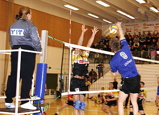 ![]() Kyky-Betset vs. Laihian LujaBetonimiesten päämyllärinä jatkaa Kristjan Kais. Kauden viimeinen ottelu käynnistyy hetken kuluttua. Kommentaattorina jatkaa Matti Försti. Matti jatkaa tästä. No niin tervetuloa jälleen tänne Kyyjärven "Hornankattilaan". Kohta on alkamassa kauden viimeinen ykkössarjan ottelu, jossa kotijoukkue Kyky-Betsetti saa vastaansa Laihian Lujan. Panoksena on sarjan kolmas sija, jota varmaan kumpainenkin joukkue tosissaan halajaa, sillä se olisi molempien joukkueiden paras saavutus miesten tasolla. Oman lisänsä tähän "paikalliskamppailuun" tuo se, että Lujan valmentajana toimii EX -kykyläinen Markku Luoma-Aho. Joukkue on pitkä ja nuorekas. Liigakokemustakin joukkueesta löytyy, sillä niin Kari Somppi kuin Miikka Tuomolakin esiintyivät viime kaudella Vaasan Kiiston liiga-joukkueessa. Myös lähes kaks metrinen Jaakko Lauttamus on kokeillut siipiensä kantavuutta nuorten eri maajoukkueissa. Mutta kotijoukkue Kyky ei kuvia kumartele. "Piitsin" erikoismies Itä-rajan takaa saapunut Kristijan Kais on nukkunut hyvin Hannun ja Jaanan "majatalossa" ja on valmis Lujan kaatoon. Koko joukkue pelasi hyvän pelin eilen voittaessaan Kajaanin Namikan ja on myös vamis näyttämään kauden päätösottelussa osaamistaan. Ottelun tuomareina ovat Liisa Nikkilä ja Päiviö Roukala. Lujan aloitus seitsikkö. Jylhä, Kupari, Lauttamus, Somppi, Taittonen, Tuomola ja libero Jääskeläinen. Kyky: itärajan miehet, Henkka, Mäkelä, Kantonen ja liberona Koskela. Ensimmäinen erä : tasaista on Kyky johtaa 4-3. Tuomolan hypäreillä Luja siirtyy 7-4 johtoon. Kyky taistelee 8-9. Tuomolan pommi vastapallosta: Luja vie erää numeroin 11-8. Kyky hölmöilee 14-11 Lujalle. Kyvyn aika tilanteeessa 12-16. Luja vaihtaa Pikkumäki ja Tuukka Tuomola kentälle. Taittonen ja Kupari huilaamaan. Kyky vaihtaa Henkka pois ja Lampela sisään. Taktinen vaihto. Lujan aikalisä tilanne 19-16 Lujalle. Kyvyn torjunta pitää tilanne 18-19. Darius tasoittaa pelin kahteenkymmeneen. Luja ottaa vaihdot takaisin. Kantoselle kaksi torjuntapistettä 22-20 Kyvylle. Somppi takoo ja tasoittaa pelin. Kantonen syöttää ja Luja tekee hyökkäysvirheeitä. Erä Betsetille 25-22. Erän ratkaisu: Kantosen kaksi torjuntaa, jonka jälkeen Lujan hyökkäys ei pysy ruudussa. Lujan syöttö myös helpponi erän kuluessa. Toinen erä: Mäkelä torjuu Kyky johtaa kaksi nolla. Passari Taittoselle käsittelyvirhe. Kais takoo syöttöruudussa. Kyky johtaa 6-1 Sauliuksen ässä 8-2 kotijoukkueelle. Luja vaihtaa: Pikkumäki pois, Kupari kentälle. Henkka kunnostautuu välillä hyökkääjänäkin. Tilanne 14-5 Betsetille. Luja vaihtaa Tuomola kentälle. Taittonen pois taktinen vaihto. Pikkumäki kentälle, Kupari jäähylle. Kyky vie erää numeroin 20-11. Kyky vaihtaa: Parkkonen kentälle Kantonen pois. Tilanne 23-13 Kyvylle. Somppi syöttää pommeja: tilanne 17-24. Kais päättää erän järkevällä iskulla. Erä Kyvylle 25-18. Kyky oli selvästi parempi varsinkin syöttöruudussa. Kyvylle seitsemän pistettä syötölla kolme virhettä. Luja kaksi pinnaa syötöllä kahdeksan virhettä. Tauko pidetty kolmas erä alkaa. Kyky vaihtanut Lampelan keskelle. Kupari lyö verkkoon. Kyky johtaa kolme-yksi. Lampelan hyppysyöttö tehoaa. Kyky johtaa jo 6-1. Luja vaihtaa Pikkumäki kehiin, Kupari pois tilanne 7-2 Betsetille. Kantosen torjunta pitää 9-4 Sauliuksen ässä 11-4. Koskelan loistava puolustus. Darius jatkaa lyömällä pallon soikeaksi 13-5. Kentälle tulleen Tuukka Tuomalan syöttö puree. Luja kaventaa tilanteeksi 10-16. Myös velipojan Miikan syöttö kulkee 14-19.Kais syöttää, Darius iskee 21-14. Kyky vaihtaa Räihä kentälle Kantonen pois. Tilanne 22-16 Betonimiehille. Erä 25-19 Kyvylle ja koko ottelu kolme-nolla Kyky-Betsetille. Kyky oli selvästi parempi ja halusi selvästi voittaa enemmän. Varsinkin vastaanotto ja syöttö olivat kotijoukkueen aseet tänään. Myös kenttäpeli Kaisin johdolla toimi hyvin. Lujasta palkittiin Kari Somppi ja Kyvystä Raimo Kantonen. Raimon "kobrakäsi" kävikin tänään terävästi. Kausi päättyi hienosti. Kolmas sija varmasti tyydyttää kotijoukkuetta. Suurkiitokset raivoisasti kannustaneelle kotiyleisölle, joka on selvästi sarjan paras. Myös sulka valmentaja Hannu Kalliojärvelle, joka aikaa ja vaivaa säästämättä on tehnyt joukkueen eteen paljon töitä. Näkemiin ensi syksyyn.